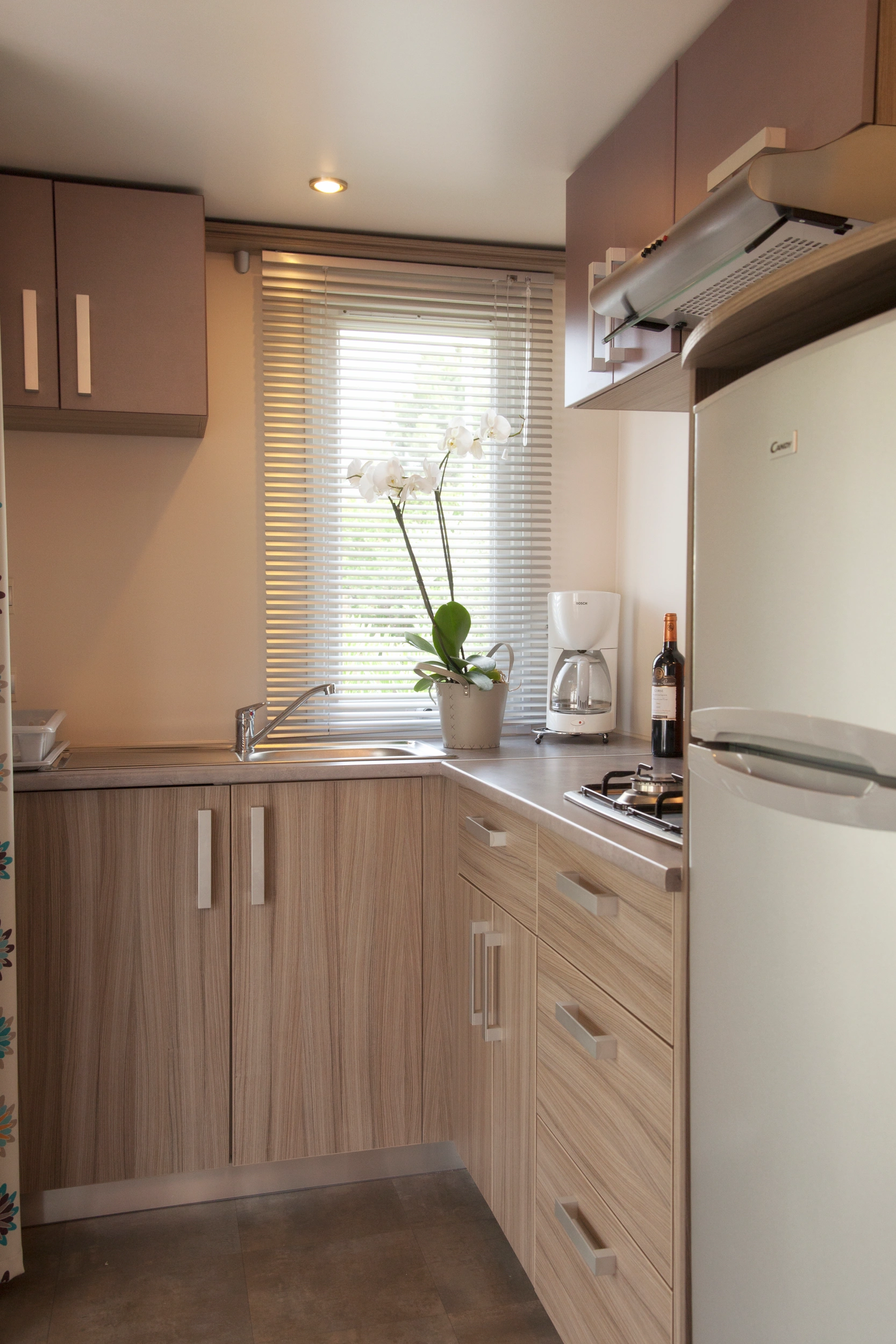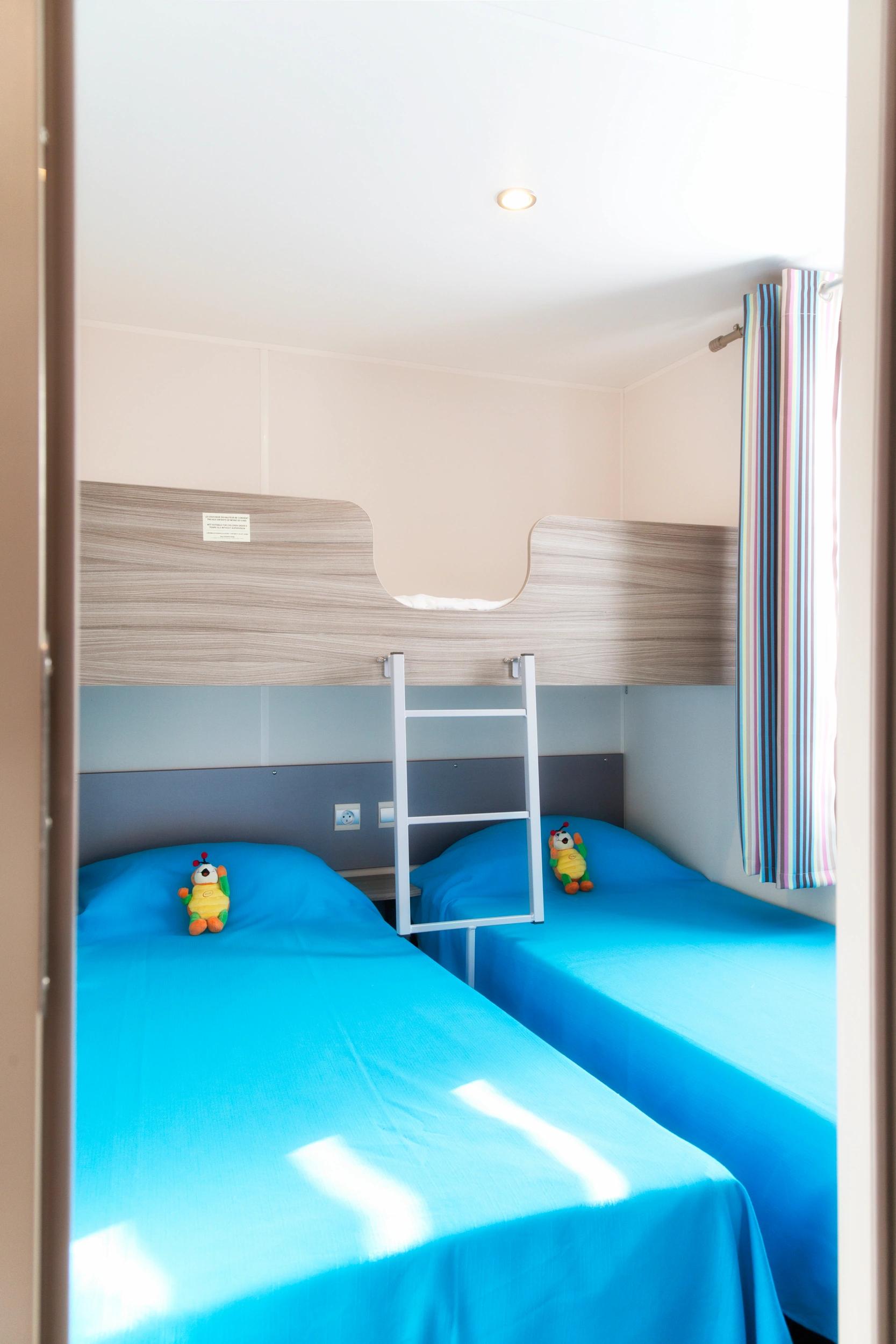 Avec 30 m2 d’espace intérieur et 13 m2 de terrasse privative, le Cottage Muredda est d’une taille extrêmement confortable pour accueillir 4 à 5 personnes en vacances. Ses deux chambres sont idéalement configurées pour un couple avec enfants. Pour le confort et l’intimité de tous, la salle d’eau et les WC sont séparés. Au cœur de l’hébergement, un vaste séjour à la décoration chaleureuse et contemporaine comprend un coin salon avec grande banquette familiale, table et chaises. Un coin cuisine parfaitement équipé vous offre une totale autonomie dans la préparation de vos repas : réfrigérateur/congélateur, évier, cuisson à gaz 4 feux, hotte aspirante, micro-ondes et cafetière vous y attendent. Le mobil-home dans son ensemble est pensé pour votre confort, avec des pièces spacieuses, une cuisine bien distincte du coin séjour, et de nombreux rangements. La climatisation équipe également l’hébergement pour vous garantir des nuits fraiches et reposantes après vos journées sous le soleil de Corse.