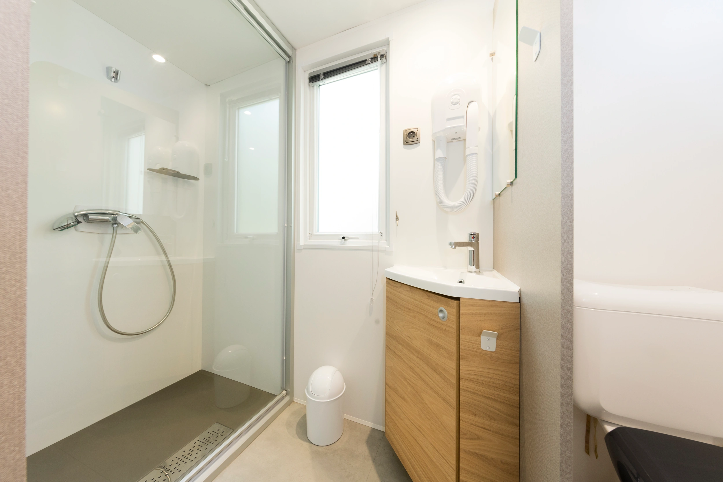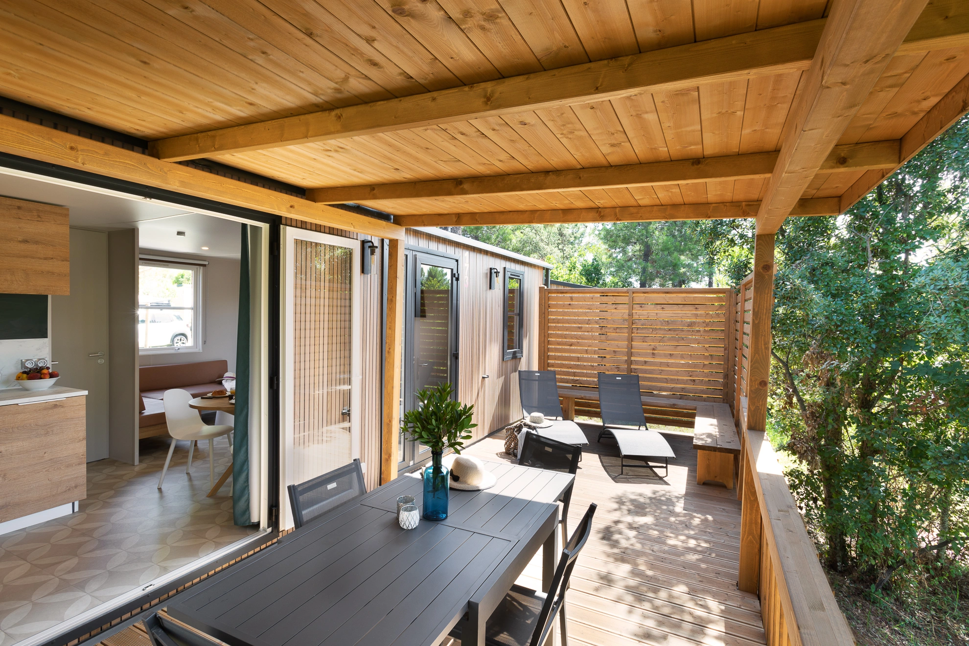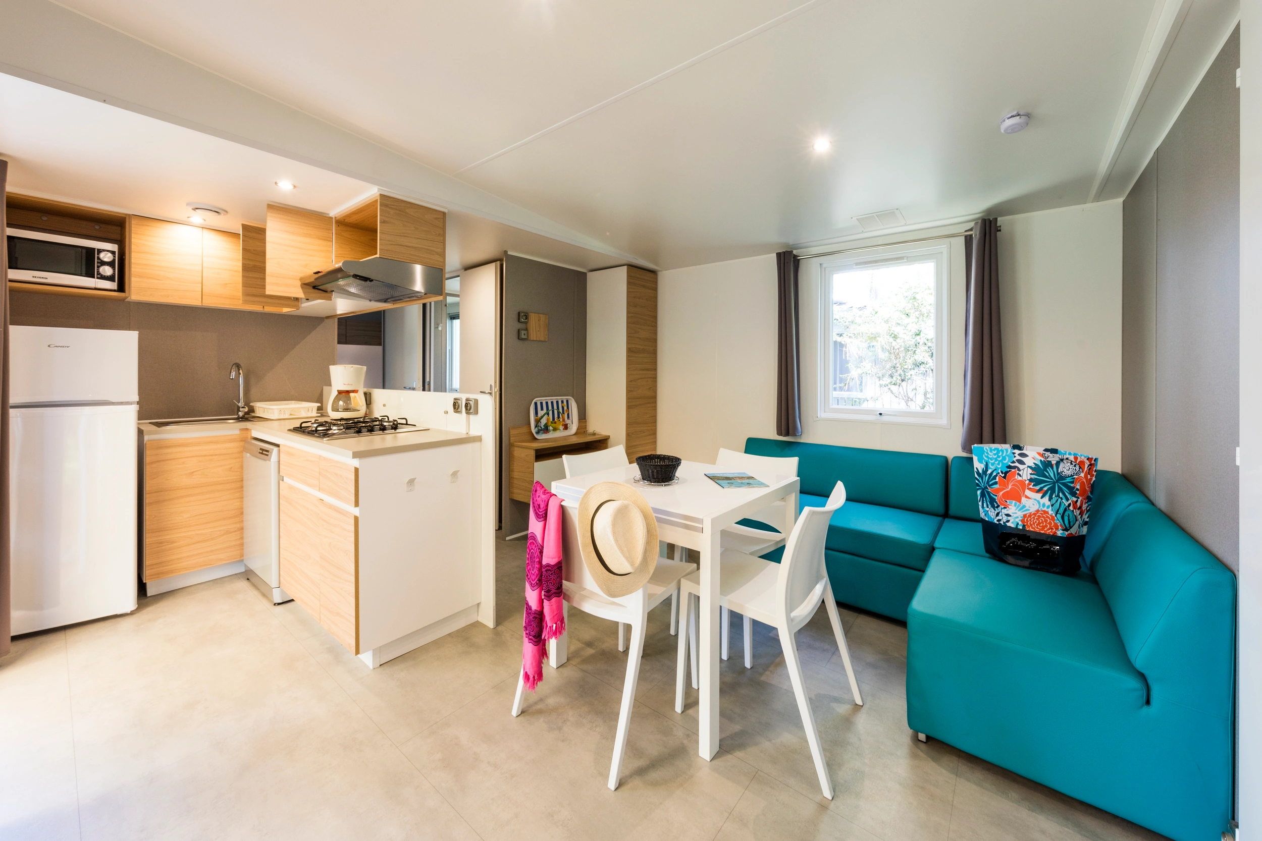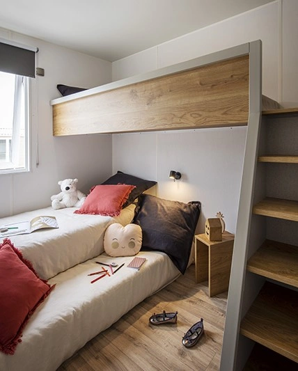 Si vous recherchez une résidence de vacances qui allie modernité et proximité avec la nature, le Cottage Montecristo est fait pour vous. L’hébergement possède de nombreux atouts. Il est notamment spacieux, comporte trois chambres confortables, dont une avec un lit double, lui permettant d’accueillir jusqu’à sept personnes. Il s’apprécie également pour sa déco accueillante. Les chambres comme les autres pièces sont notamment dotées de meubles et équipements haut de gamme. Dans ce cottage en somme, une famille retrouve le même niveau de confort auquel elle est habituée chez elle.Le but est d’ailleurs d’offrir un hébergement niché dans un environnement à la fois calme et dépaysant mais avec un intérieur moderne. Parmi les autres atouts du mobil-homes, il y a bien évidemment aussi la cuisine, dans laquelle sont mis à votre disposition plusieurs équipements pratiques, parmi lesquels un réfrigérateur, un four à micro-ondes, une bouilloire ou encore un lave-vaisselle. Vous avez tout ce qu’il faut pour faire plaisir à votre famille en préparant de bons repas, par exemple à base de produits du terroir que vous aurez achetés au marché le plus proche du camping. Vous pouvez bien évidemment aussi passer d’agréables moments au restaurant du camping, où sont servies les meilleures spécialités corses. On relèvera également que le mobil-home est doté de deux salles de bains avec douche et lavabo, et de deux toilettes indépendants. A cela s’ajoute une spacieuse terrasse couverte avec deux transats où vous pourrez prendre un verre en famille ou avec des amis par exemple.