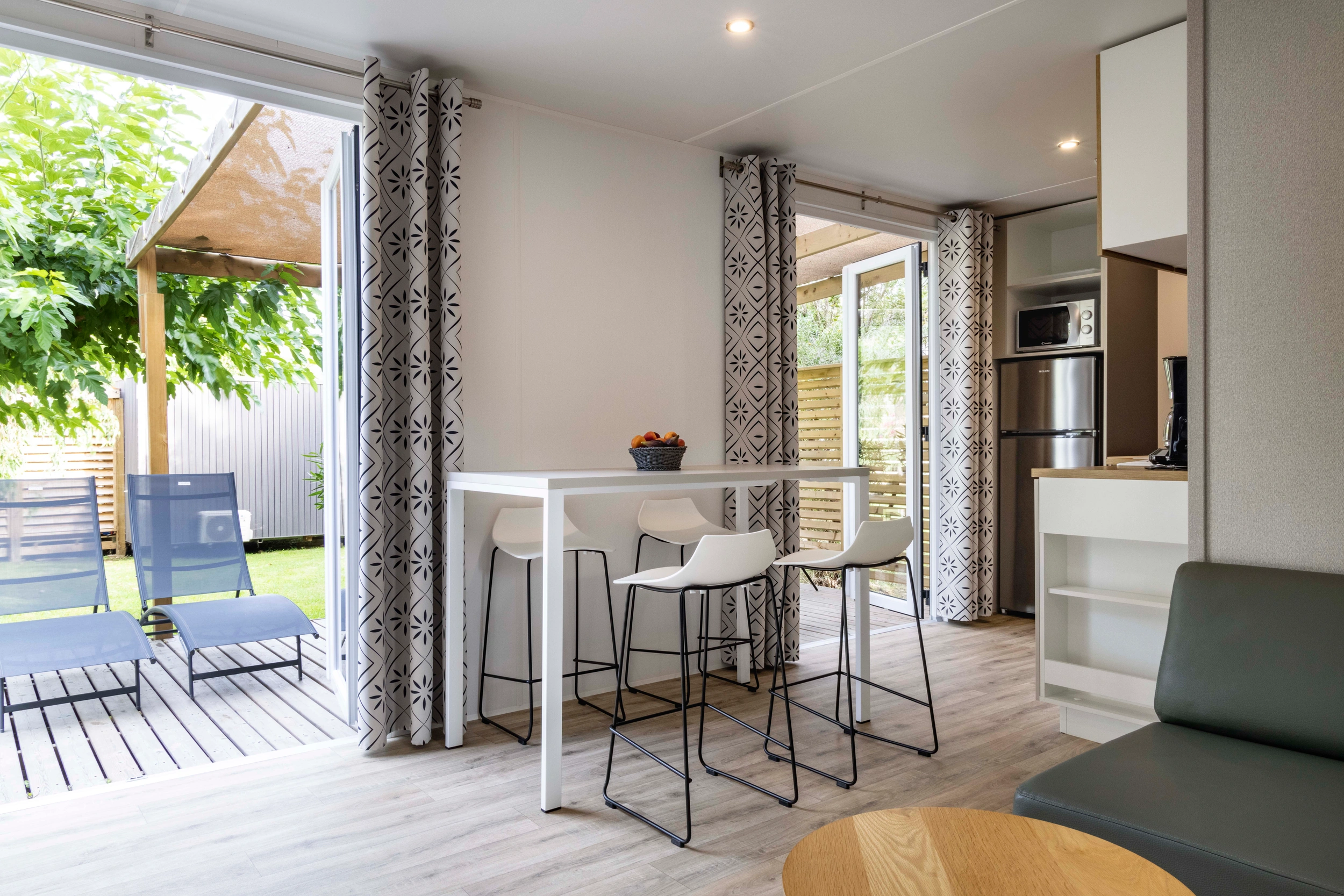 Différents mobil-homes avec terrasse extérieure de 18 m²