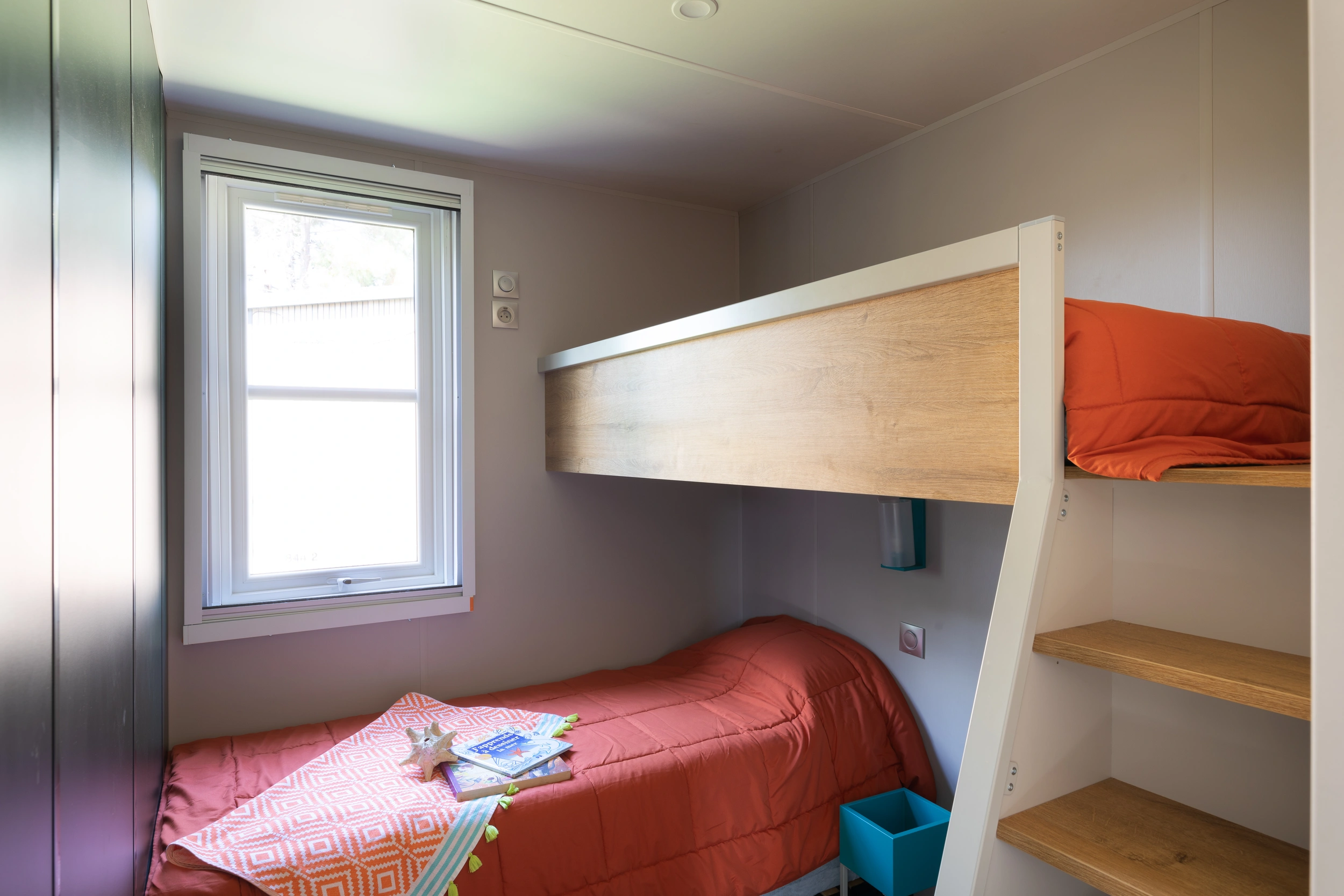 Situé entre 200 et 500 mètres de la mer, le cottage Urbino vous accueille dans un espace de 32 m² pour un séjour inoubliable en Corse. Installé au sein d’un camping offrant des services et prestations haut de gamme, il se niche dans un cadre arboré et fleuri propice à la détente. Le cottage Urbino garantit tout le confort nécessaire pour des vacances en famille réussies. La location comprend une chambre parentale avec un lit double, ainsi qu’une seconde chambre équipée de trois couchages : un lit en mezzanine, un lit simple et un lit gigogne,avec des moustiquaires pour chaque chambre. Vous profiterez également d’un coin salon avec table basse, d’une cuisine entièrement équipée pour préparer vos repas, ainsi que d’une table familiale conviviale. Tout est pensé pour vous offrir le confort d’un véritable chez-vous. Pour parfaire votre séjour, le logement dispose d’une télévision avec TNT, d’un coffre-fort pour vos objets de valeur, d’un sèche-cheveux, d’un lave-vaisselle et d’un système de climatisation, pour des vacances sans aucune contrainte.