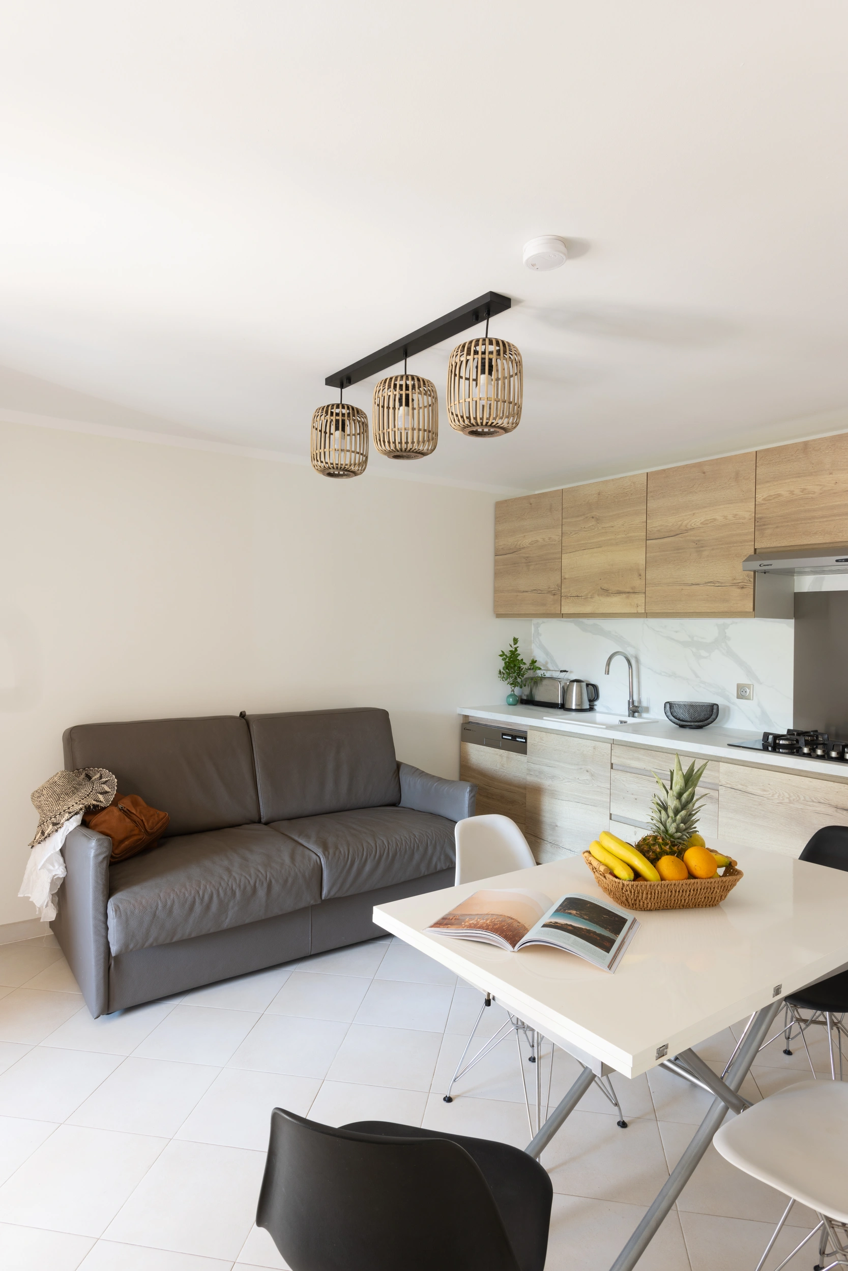 Profitez d’une villa de type T3 à 200 m de la mer pour vos prochaines vacances en Corse en famille ou entre amis ! Avec une capacité d’accueil de 6/7 personnes, elle vous garantit un séjour serein, sans contraintes et dans le meilleur confort. Meublé avec goût, cet appartement dispose d’un canapé-lit dans le séjour et de 2 chambres supplémentaires : l’une avec lit double et l’autre avec lits simples. L’idéal par exemple pour deux couples d’amis avec enfants. De plain-pied ou en duplex, en rez-de-jardin ou à l’étage, votre T3 est décoré avec goût et équipé de matériel et de mobilier de qualité. Il vous offre de belles prestations comme la climatisation, le téléviseur et le coffre-fort. La cuisine, parfaitement équipée pour des vacances en famille nombreuse ou en groupe, dispose d’un lave-vaisselle. Dans ces 40 m2, les espaces sont pensés pour vivre et se déplacer confortablement à plusieurs. Pour l’intimité de tous, la vaste salle d’eau est séparée des toilettes.