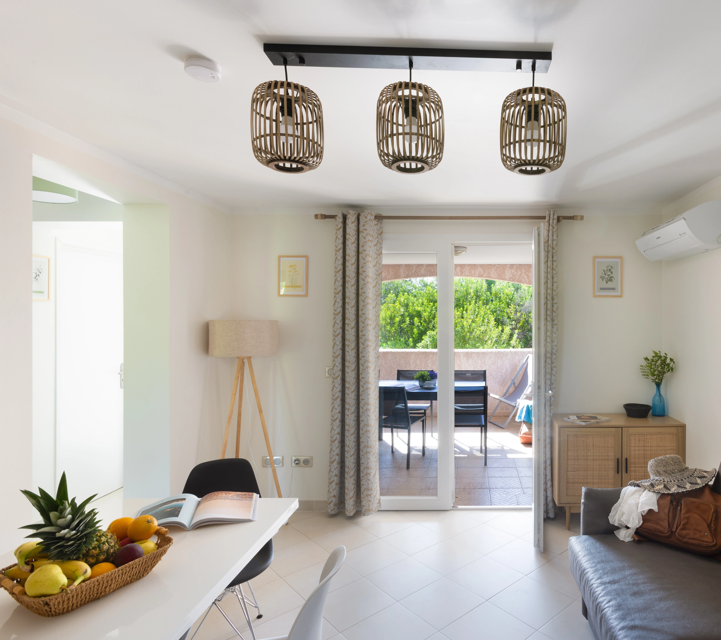 Point fort de votre villa de vacances T3, une terrasse privative de 13 m2 augmente la surface à vivre de votre logement et vous offre la possibilité de profiter du plein air à loisir. Son salon de jardin complet la destine à devenir votre séjour-salle-à-manger de plein air. Vous vous y retrouvez au petit-déjeuner, y prenez vos repas, et y partagez de conviviaux apéritifs. Le soir, vous pouvez continuer à vous y prélasser jusqu’à la nuit tombée pour profiter au maximum des longues soirées d’été ou de l’air qui se rafraichit. En rez-de-jardin ou en balcon, la terrasse du T3 vous offre un espace de plein air intimiste et chaleureux pour des vacances 100 % ressourçantes.